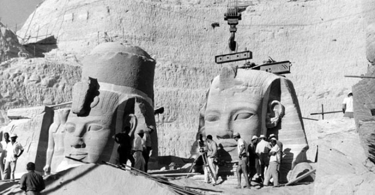 Kazi ya mradi huu mkubwa wa kimataifa ilikamilishwa kati ya 1964 na 1968, kwa msaada wa UNESCO kama operesheni kubwa zaidi ya Uhandisi na akiolojia ili kuokoa mahekalu ya Abu Simbel, iliyojumuisha wafanyakazi na wahandisi wa 2000, mashirika ya kimataifa, kwa gharama ya karibu dola milioni 40, na aina mbalimbali za cranes kubwa na cranes zilizotokana na misumeno ya mkono na ng'ombe zilitumika katika mchakato huu wa kiufundi na Uhandisi, kama mpango ulihitaji hekalu kubwa lihamishwe na sanamu zake kubwa, baada ya kuikata kuwa mawe makubwa yenye Izito wa tani 1-2 kila mmoja, na baada ya kupiga picha na kuinua Uhandisi ulianza kukata mawe ya hekalu katika vipande vyenye uzito kati ya tani 10-15 kwa kila kipande, wakati idadi ya vipande ilifikia vipande 5000, katika maandalizi ya kuisogeza kwa Umbali wa mita 65 mbali na mto, na hadi mita 200 upande, kuwekwa tena kwenye kilima bandia, baada ya kuchukua hatua zote za kiufundi kutoka kupata taa, kupima Usalama kutoka kwa tetemeko na majanga, na kupima joto na Unyevu, iliyofanya ionekane katika muonekano sahihi sana na wa kitaalamu kama hapo awali.