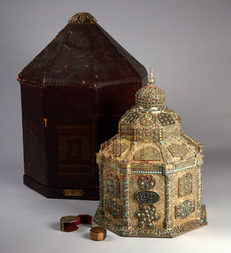 Maktaba ya Vitabu na vya nyaraka ya Kitaifa na idadi kubwa ya vitu vya kale adimu kutoka kwa mkusanyiko huo, kama vile sanduku la vito vya dhahabu lililowekwa kijisehemu katika umbo la Kuba ya Mwamba huko Jerusalem, ambayo juu yake ni Kurani adimu, na kito cha yai lililochongwa na kazi za Khedive Ismail juu yake..n.k, na vilevile limehifadhiwa katika Makumbusho ya maktaba hiyo katika Bab Al-Khalq, vinapatikana bure.