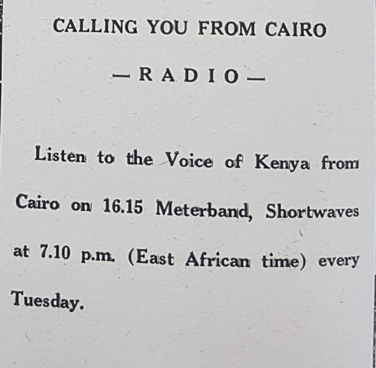 Après avoir recherché et fouillé pendant des années, j'ai finalement trouvé quelques enregistrements rares de Radio Cairo, qui ont été diffusés en Égypte en langue swahili en 1954, pour exprimer l'esprit de solidarité et de soutien mutuel entre les pays d'Afrique orientale et centrale, en particulier la voix des Kenyans lors de la lutte pour l'indépendance. Elle est créditée d'avoir fait la lumière sur leur détresse et leurs souffrances, et d'avoir dénoncé les pratiques et politiques commises par les colonialistes britanniques contre eux après une longue période de secret sur les nouvelles émanant de la colonie et contrôlées par les Britanniques, pour dissimuler les violations et les massacres qu'ils commettent et prolongent leur domination coloniale.